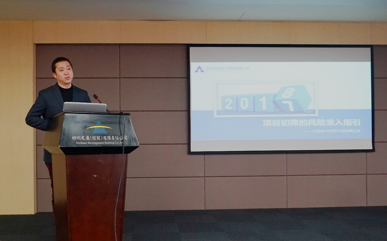 自2017年8月份啟動“起跑線與加速度”行動學(xué)習(xí)培訓(xùn)項目以來,培訓(xùn)團(tuán)講師先后為公司高層、中層、業(yè)務(wù)骨干及基層人員舉辦了領(lǐng)導(dǎo)力、結(jié)構(gòu)化思維、執(zhí)行力等十余場專題培訓(xùn),根據(jù)培訓(xùn)課程安排,公司全體員工按照工作協(xié)同、部門統(tǒng)籌、破除壁壘、優(yōu)勢互補(bǔ)、高度參與的原則,組建了4個學(xué)習(xí)行動小組,每組根據(jù)業(yè)務(wù)需要,按照發(fā)現(xiàn)問題、分析問題、解決問題的原則,確定了“項目初篩的風(fēng)險控制”、“項目后評價機(jī)制”、“中介機(jī)構(gòu)后評價及管理”、“不良資產(chǎn)包后端處置流程指引細(xì)化”等四個研究課題。每個行動小組確定課題后,歷時2個多月,先后經(jīng)過多次討論、反復(fù)修改,最終形成了項目初篩、中介機(jī)構(gòu)選聘、不良資產(chǎn)包后端處置、后評價等4個專項制度或業(yè)務(wù)指引。本次由公司領(lǐng)導(dǎo)牽頭、全體員工參與的行動學(xué)習(xí)匯報大會,不僅是本次行動學(xué)習(xí)培訓(xùn)課程安排的實(shí)戰(zhàn)內(nèi)容之一,也是對本次為期4個月的培訓(xùn)成果的一次全面檢驗(yàn)。