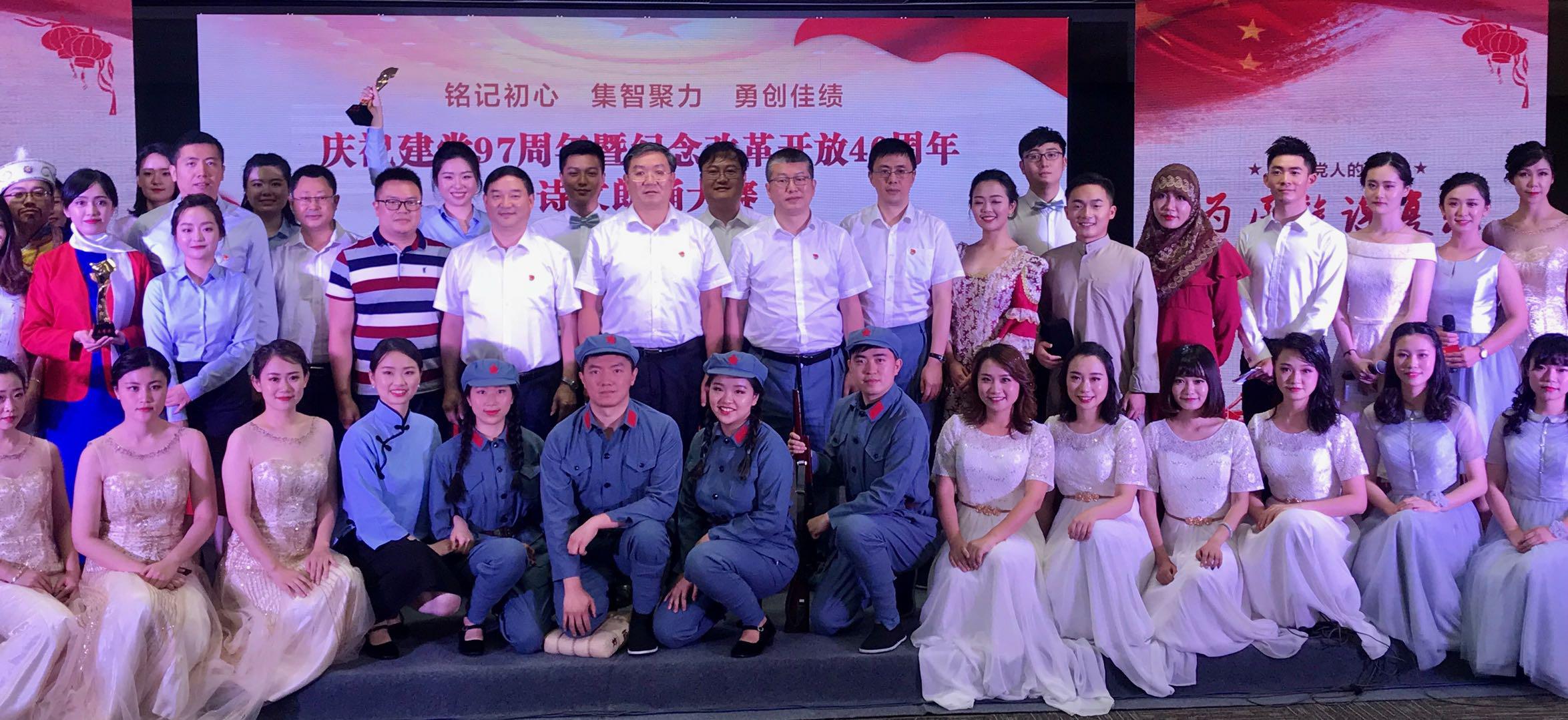 7月3日,四川金融控股集團(tuán)有限公司舉辦“慶祝建黨97周年暨紀(jì)念改革開放40周年”詩文朗誦大賽,集團(tuán)各部門及出資公司派隊(duì)參賽。比賽中,各代表隊(duì)以飽含深情的詩文朗誦向黨的97歲生日獻(xiàn)禮。經(jīng)過激烈角逐和現(xiàn)場評分,四川發(fā)展資產(chǎn)管理有限公司(以下簡稱“川發(fā)資管”)詩歌朗誦節(jié)目《征程》獲99.3分,榮獲此次大賽第一名。