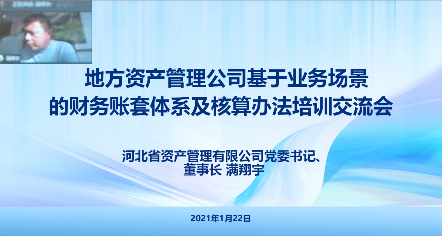 2021年1月22日下午,在中國地方AMC論壇輪值主席單位山東省金融資產(chǎn)管理股份有限公司、秘書長單位四川發(fā)展資產(chǎn)管理有限公司(以下簡稱“川發(fā)資管”)和河北省資產(chǎn)管理有限公司(以下簡稱“河北資管”)積極倡議下,由川發(fā)資管負(fù)責(zé)承辦的地方資產(chǎn)管理公司基于業(yè)務(wù)場景的財務(wù)賬套體系及核算辦法培訓(xùn)交流會成功舉行。本次會議通過線上視頻會議的方式召開,全國近50家地方資管公司100余名財務(wù)條線從業(yè)人員以視頻連線方式參加會議。會議由川發(fā)資管黨委書記、董事長、總經(jīng)理蒙宇主持。